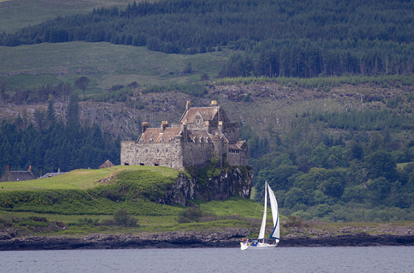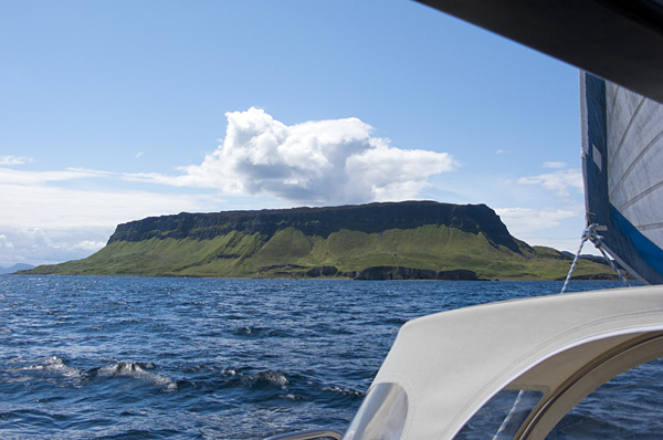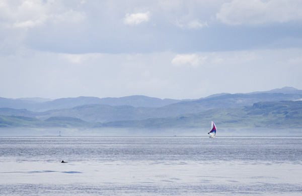 Nu har vi seglat på västkusten i ett par dagar med väldigt bra väder om än lite vindfattigt. På vägen ut ur kanalen träffade vi på ett par skottar i en fin träbåt som vände ut och in på sig själva för att försäkra sig om att vi inte skulle missa något sevärt under våra kommande veckor.